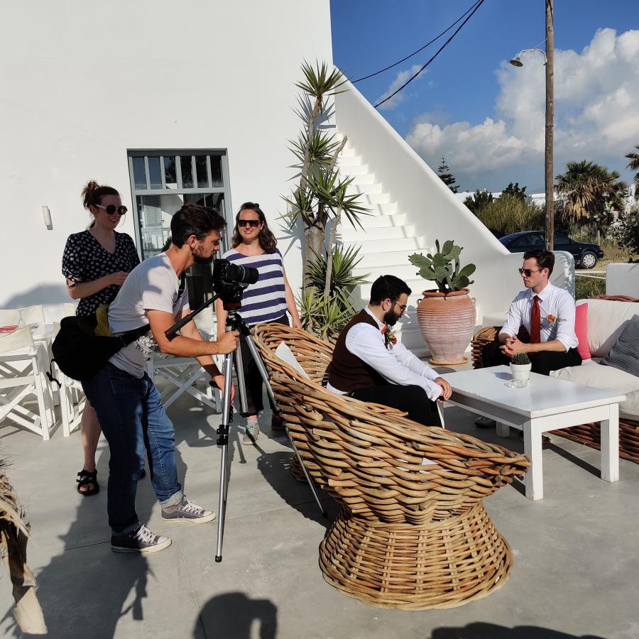 Thanks to a “whole bunch of strands coming together that, in a different context, wouldn’t be possible,” the class produced a seven-minute movie on Naxos. A choral ode from Euripides’ tragedy Phaethon (which survives only in fragments) inspired the production—directed by Helen Eastman, with composer Alex Silverman and producer Mairin O' Hagan, and starring the students singing in the original Ancient Greek. The collaboration with the UBC program, along with funding from a SSHRC Connection Grant, allowed the makers to create a film of a song from an Ancient Greek play, a project which requires a large cast and would otherwise be financially unviable. The students got to apply their course work towards artistic creation and dabble in acting with seasoned professionals. “Some went really far out of their comfort zones,” Dr. Marshall says. “Let’s face it, no one is comfortable singing in Ancient Greek!”