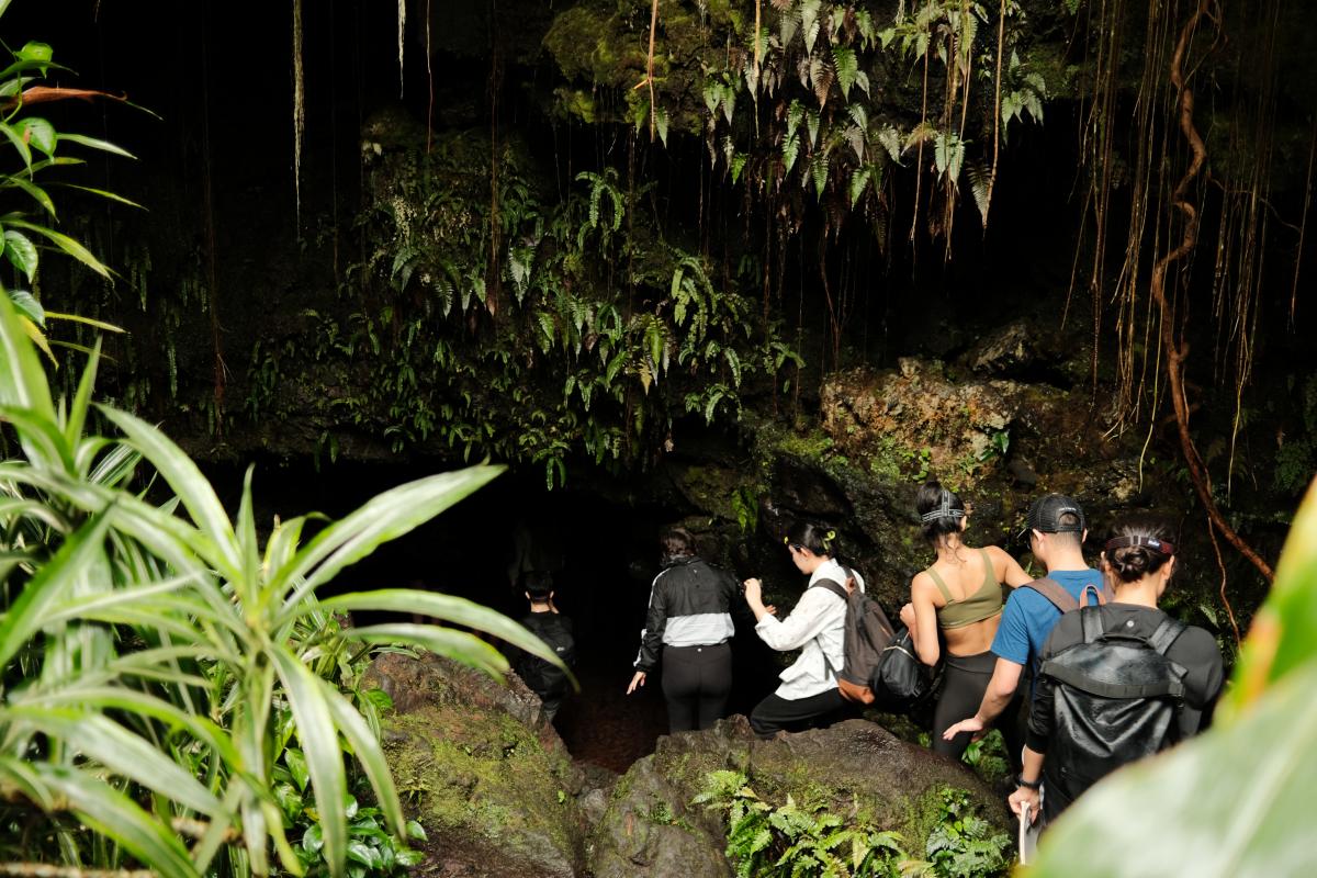 The UBC Global Seminar class decending down a lava tube in Hawa'ii (photo: Ahmed Neelim Novo)