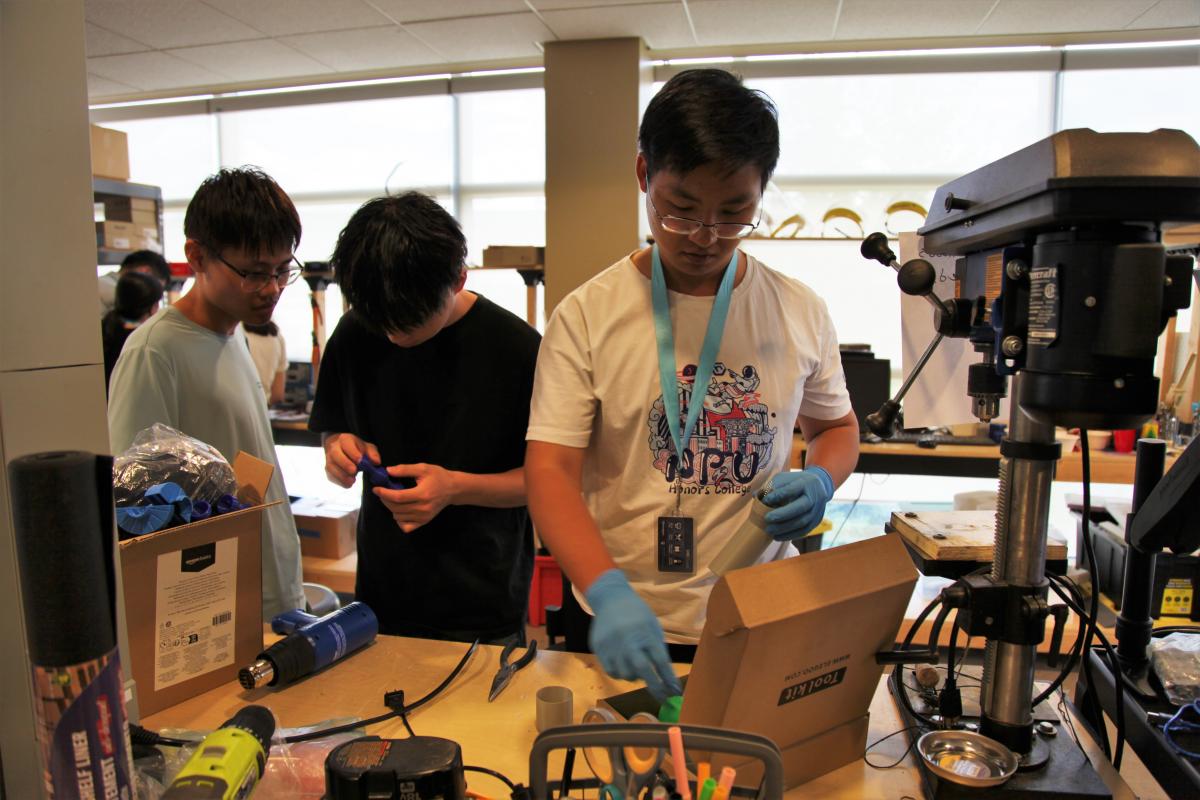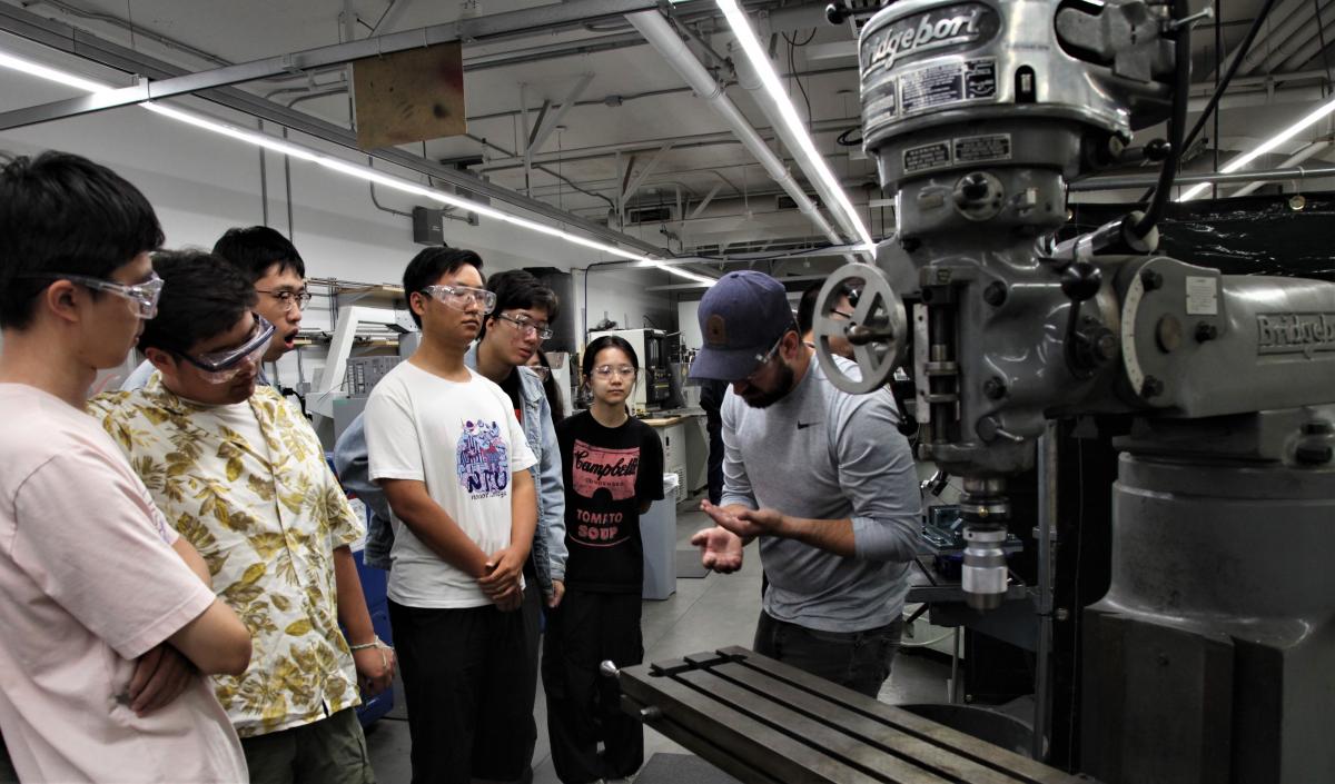 The group learned the finer arts of manufacturing in the UBCO fabrication lab (photo: Edward Pye/UBCO)